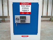 劇毒藥品柜帶電子密碼鎖+機械鎖,帶防盜報警功能,雙鎖兩人管理,開門時需兩人同時在場,符合易制毒化學(xué)品儲存管理要求。